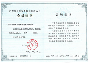 广东省公共安全技术防范协会会员证书