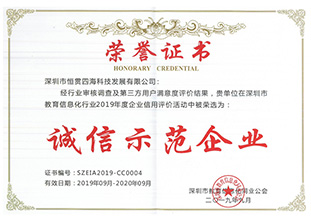 诚信示范企业证书