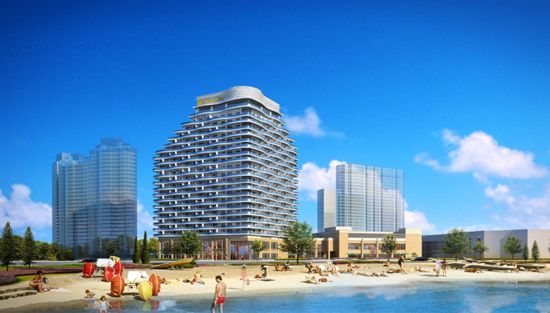 鲅鱼圈希尔顿逸林酒店坐落在营口市鲅鱼圈区辽东湾大街西,滨城大道北,建筑面积51891.37m²,地下1层,地上23层,这是一个由国际五星级酒店和魔法温泉中心组成的综合体,建成后将成为鲅鱼圈区的城市新名片。